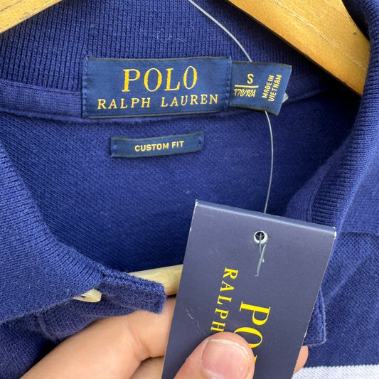 RALPH LAUREN POLO BLUE STRIPPED SHORT SLEEVE POLO SHIRT