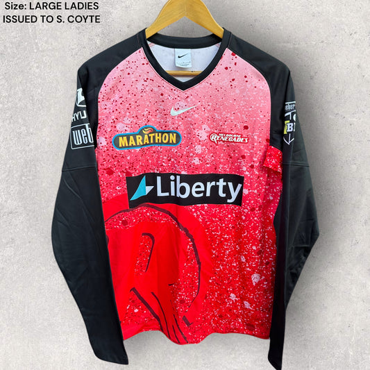MELBOURNE RENEGADES BBL CRICKET MATCH WORN LONG SLEEVE ISSUED TO SARAH COYTE