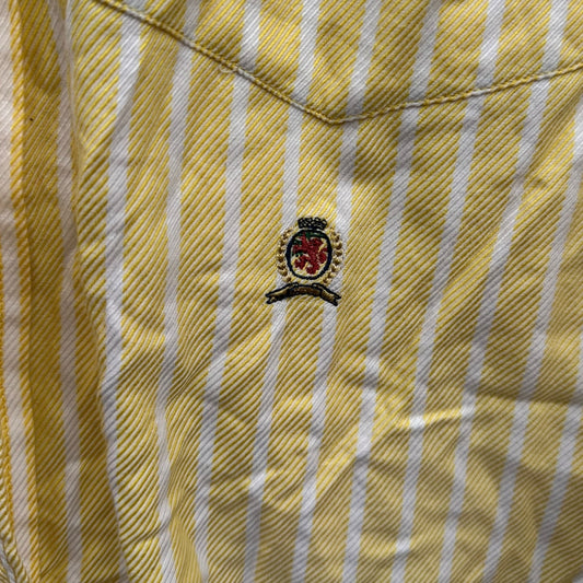 TOMMY HILFIGER MENS YELLOW STRIPPED 80s DESIGN LONG SLEEVE BUTTON UP SHIRT