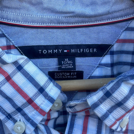 TOMMY HILFIGER WHITE / RED / BLUE BUTTON UP LONG SLEEVE SHIRT