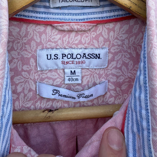 US POLO ASSASSIN PINK & WHITE LONG SLEEVE BUTTON UP SHIRT