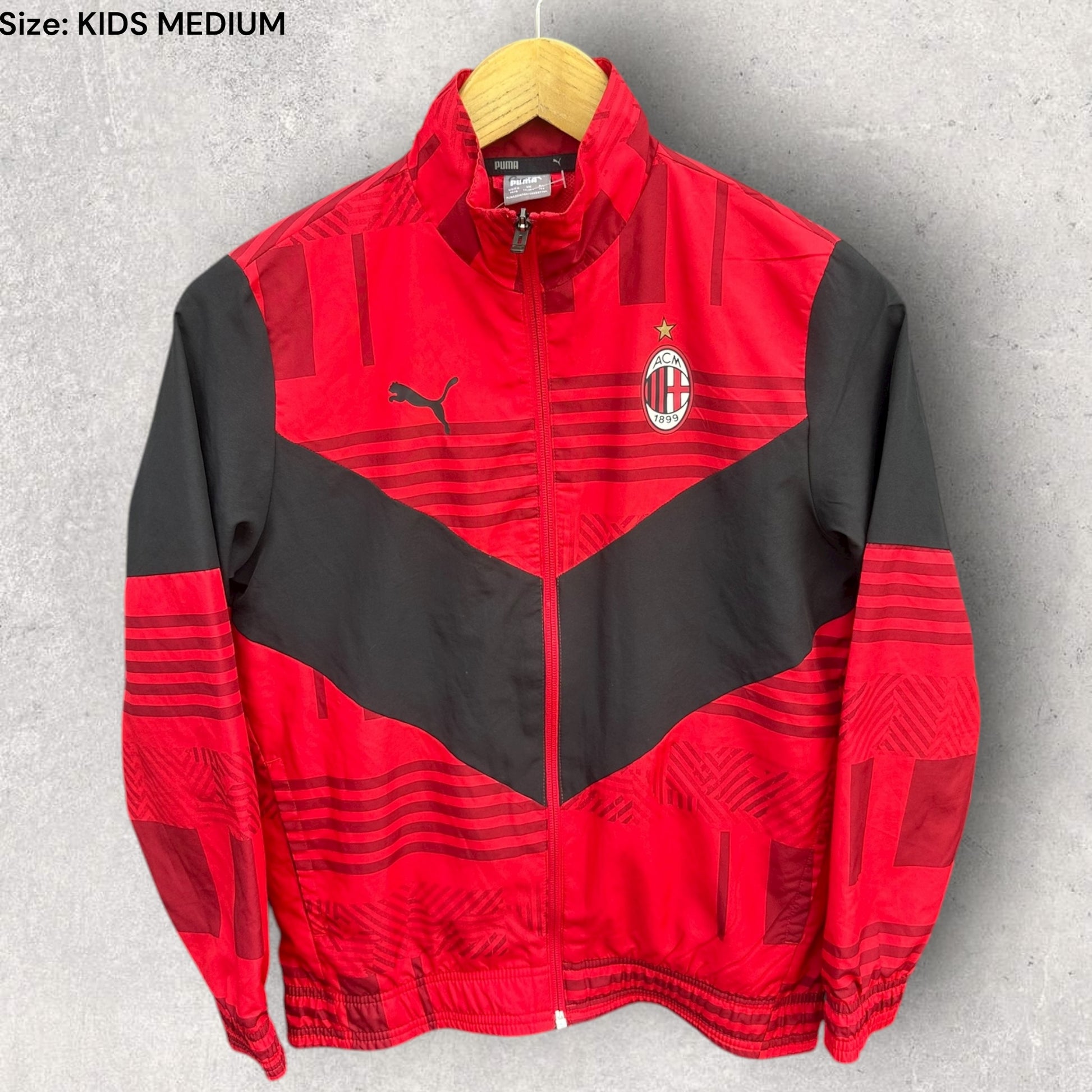 AC MILAN KIDS PUMA RED WINDBREAKER FOOTBALL JACKET