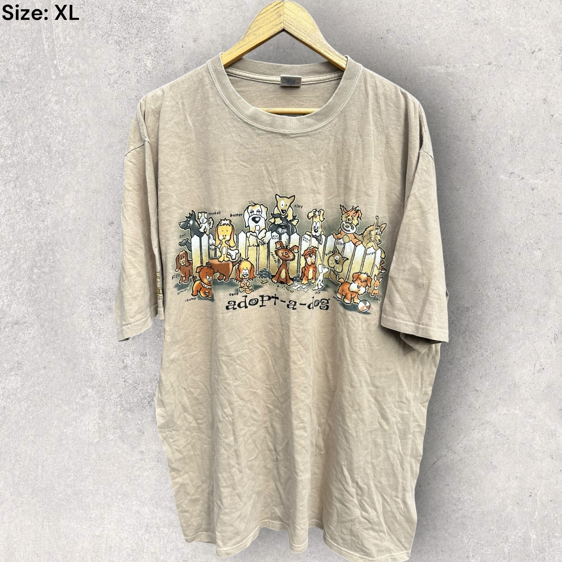 ADOPT A DOG VINTAGE BEIGE GRAPHIC T-SHIRT