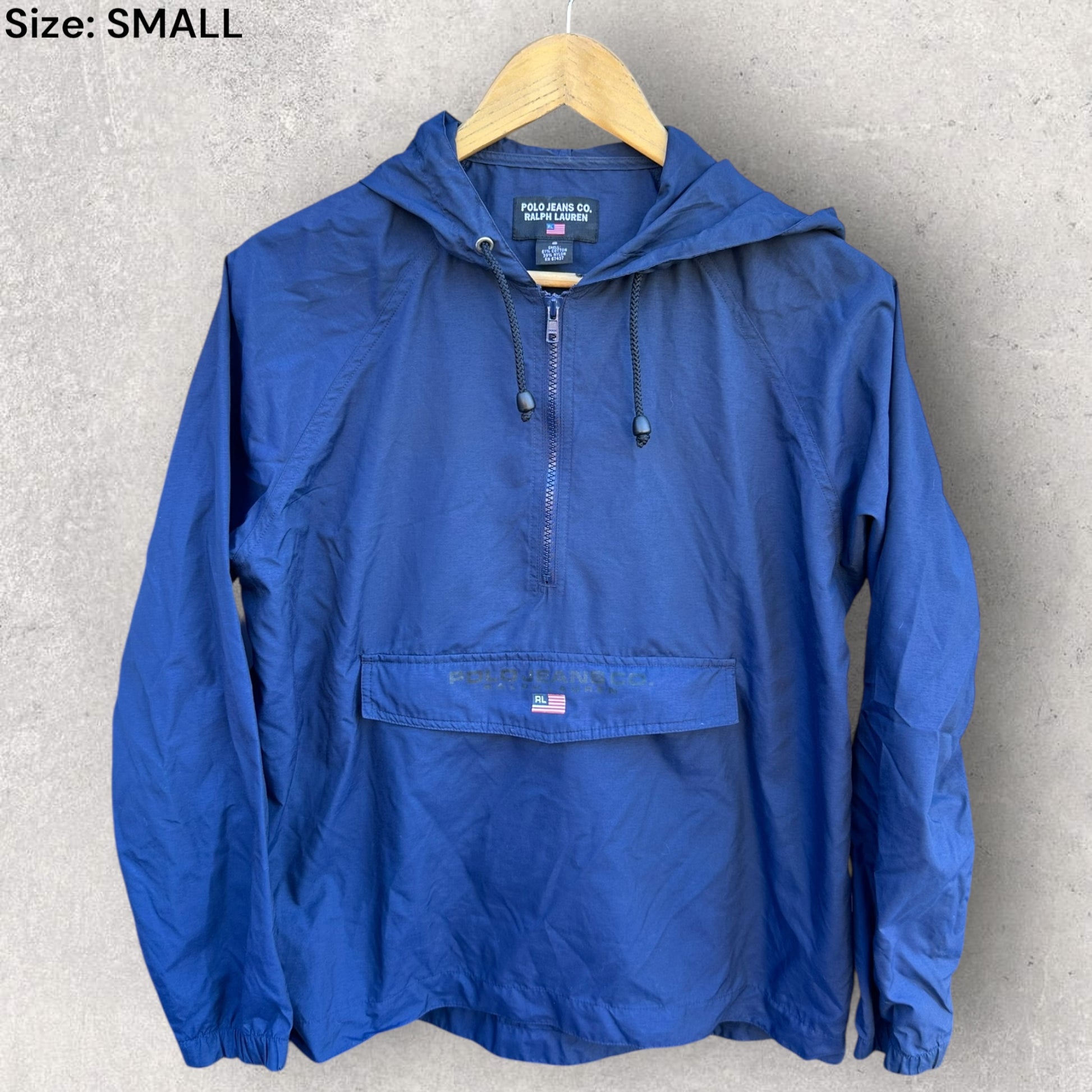 RALPH LAUREN POLO HALF ZIP BLUE WINDBREAKER HOODED JACKET